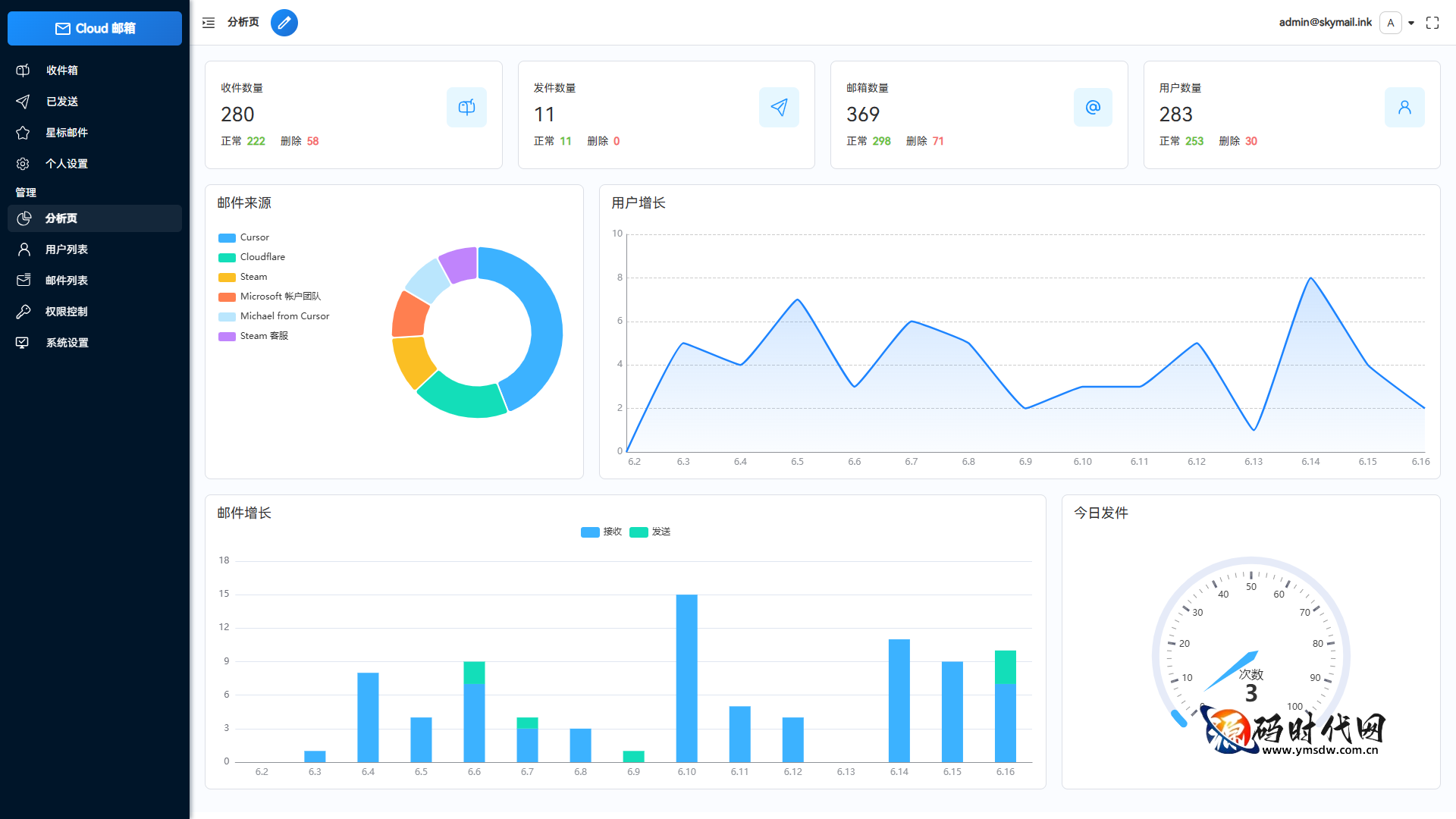 功能全面:响应式设计适配PC和移动端,支持邮件群发、附件收发(基于R2对象存储)、星标标记重要邮件、管理员RBAC权限控制、多号模式灵活管理、开放API批量操作、数据可视化分析,以及个性化设置(如自定义网站标题和登录背景)。同时,系统集成Turnstile人机验证,确保安全,并可关闭注册或发送功能,设为私人站点,满足多样化需求。