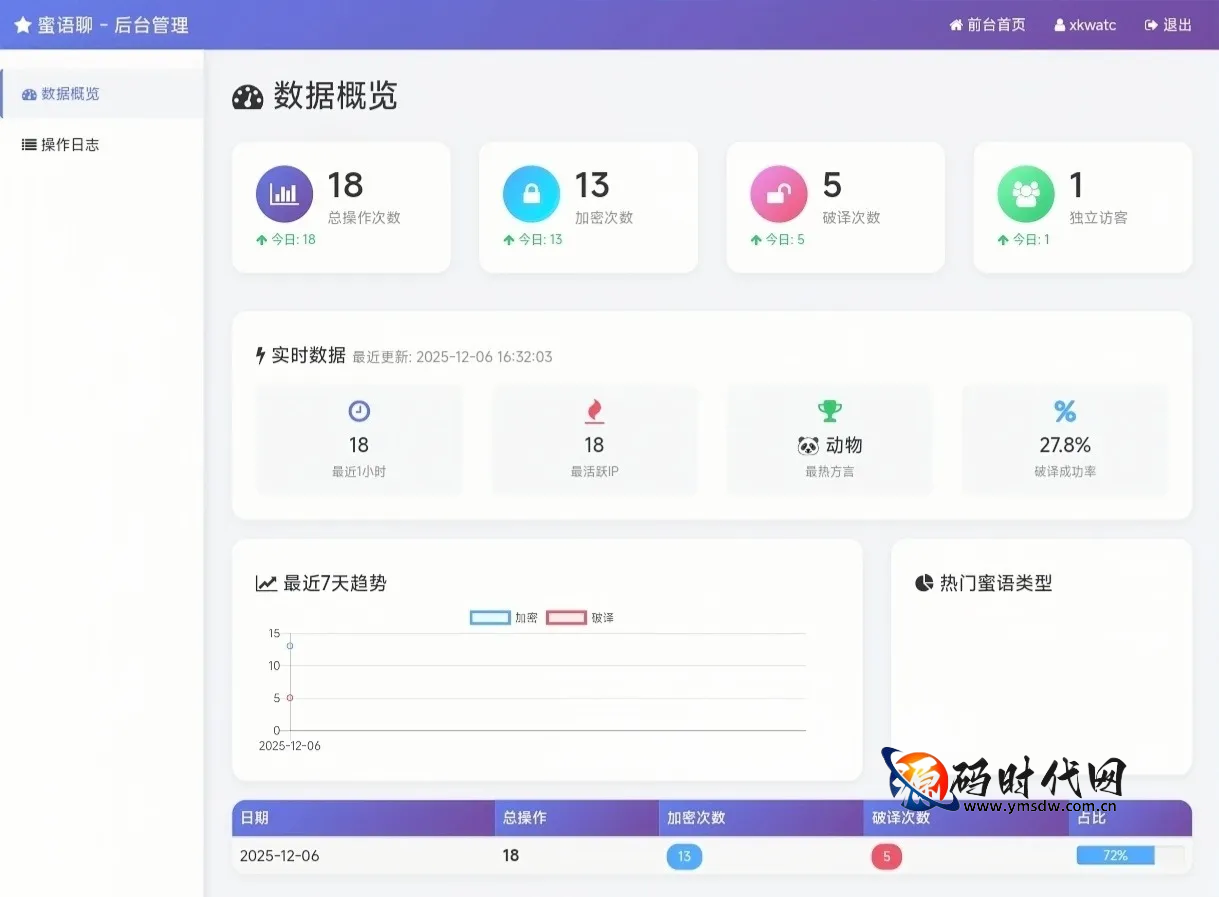 聊天时想发一句只有特定朋友才能看懂的话?或者想在社群里制造一点神秘的互动氛围?这款好玩的秘密语言工具正是为此而生。它是一款基于PHP开发的轻量级在线加解密系统,将普通的文字转换成各种风格的”秘密语言”,让沟通变得有趣又私密。系统自带后台管理,支持多种加密类型切换,无论是个人娱乐还是社群互动,都能轻松玩出花样。