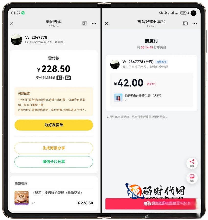 系统内置14套高还原度代付模板:美团、京东、拼多多、滴滴出行(2套)、携程(2套)、咸鱼、抖音、淘宝闪购、淘宝好物、得物、飞猪、猫眼。每套模板均配有专属推广海报,可直接用于引流分享。