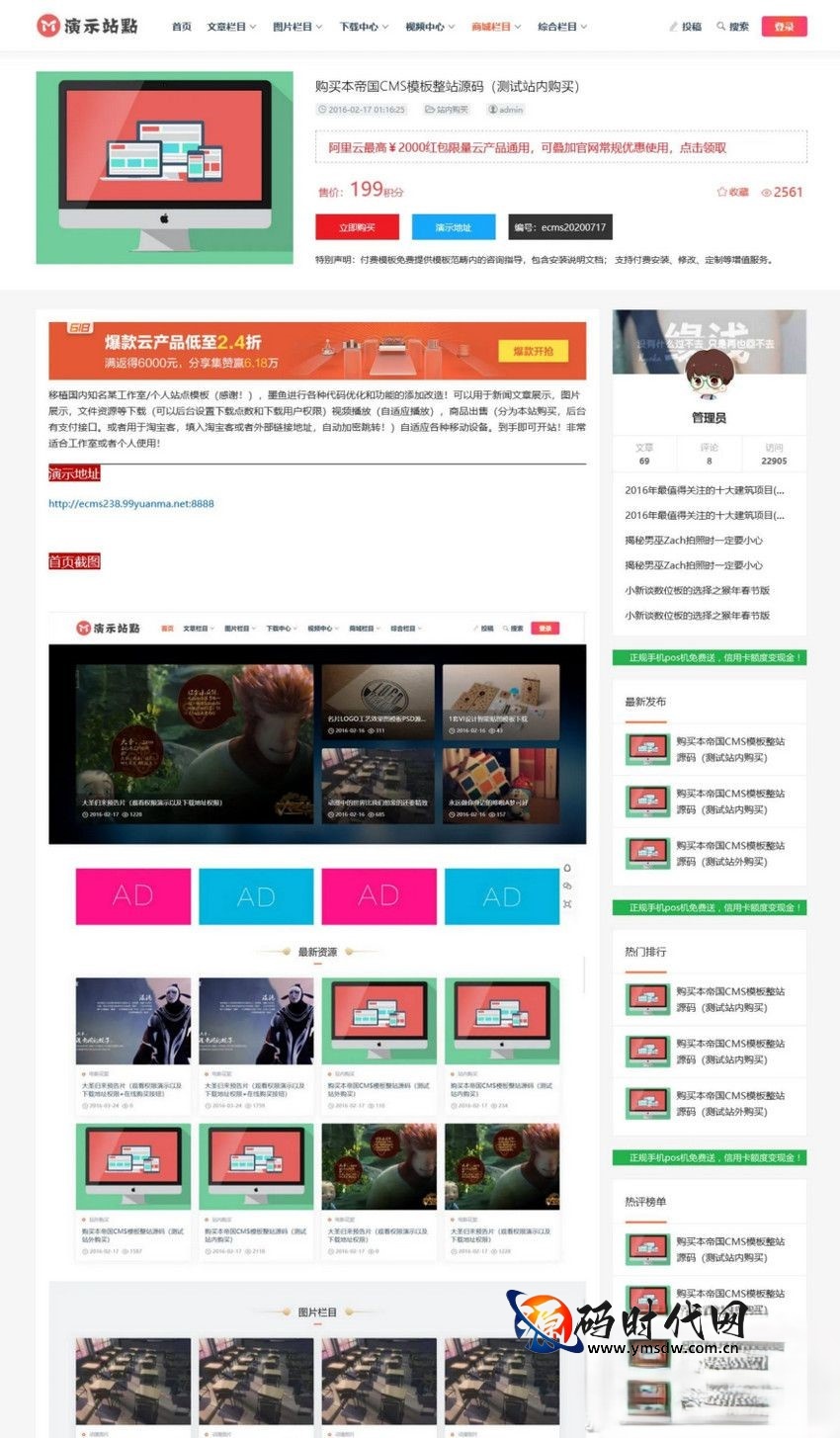 本套整站源码基于帝国CMS开发,集新闻文章展示、图片相册、文件资源下载、视频播放、商品销售(含淘宝客模式)于一体,适用于搭建下载站、影视视频站、图片素材站、资源分享社区以及淘宝客导购商城等多种场景。系统功能强大且高度可配置,后台可精细控制下载所需的点数及用户权限,实现资源变现。