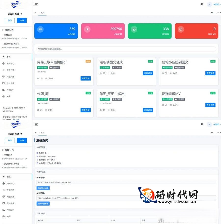 在前端展示与数据统计方面,首页新增文字广告位,可灵活添加推广内容,提升平台变现能力;同时新增API统计功能,直观展示API调用数据、使用情况,方便管理员实时掌握平台运营状态,做出精准运营决策。